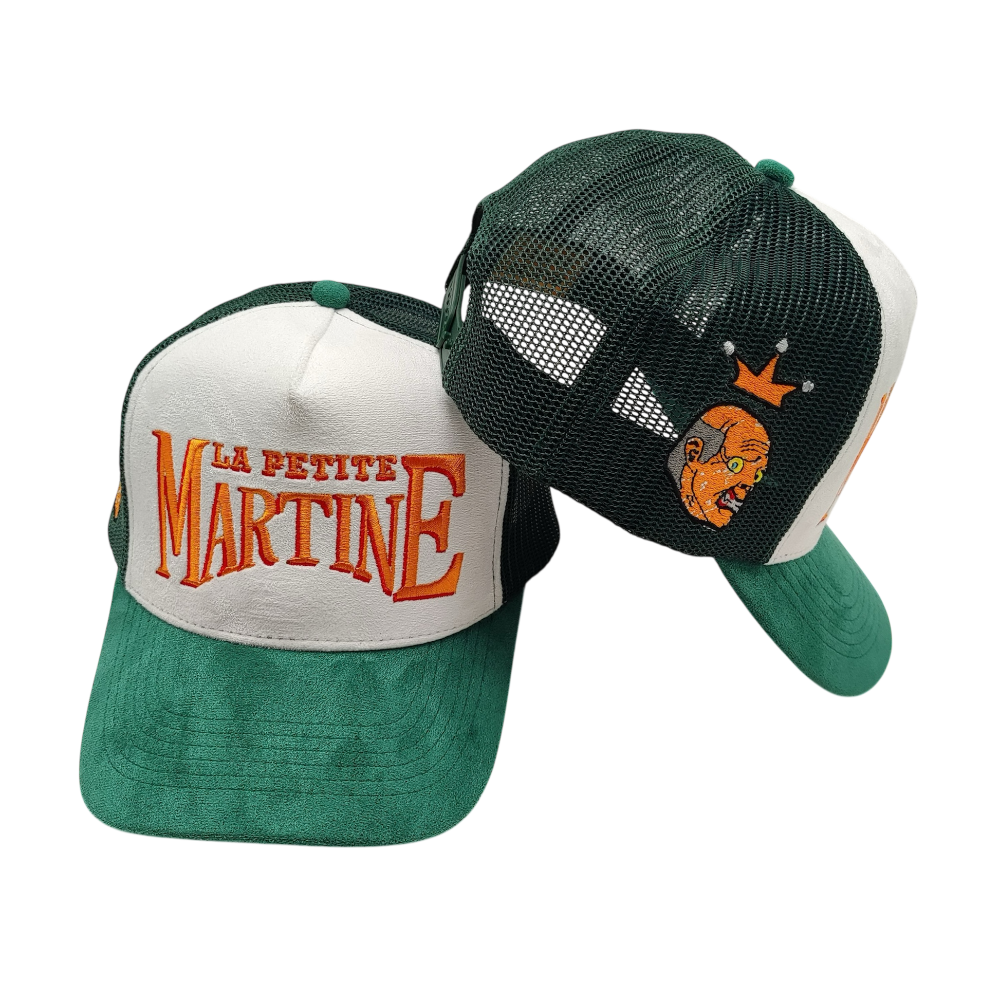 Première collection “La Petite Martine” trucker hat avec broderie sur l’avant et texture effet daim.